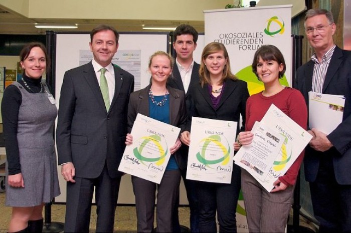 Den ersten Platz der Prämierung erreichte Eva Maria Burger, die an der Universität für Bodenkultur Wien Umwelt- und Bioressourcenmanagement studierte. Mit dem Thema Ihrer Masterarbeit "Inhaltsanalytische Ermittlung relevanter Kriterien zur Verechnung des Carbon Footprint bei Lebensmitteln" konnte sie die Jury überzeugen. Mit der Arbeit über "Maßnahmen und Instrumente zur Förderung der Energieeffizienz in Gebäuden - ein Vergleich zwischen Österreich un der Schweiz" belegte Sandra Meier den zweiten Platz. Sie studierte Umweltsystemwissenschaften mit dem Fachschwerpunkt Volkswirtschaftslehre an der Karl-Franzens Universität Graz. Die drittprämierte Sarah Stamatiou, sie studierte Internationale Betriebswirtschaftslehre an der WU Wien, konnte mit ihrem Thema "Consumer Perception of Corporate Social Responsibility and the Communication of Corporate Social Responsibility - An Analysis of Dutch Consumers" punkten.